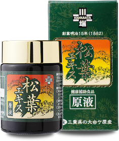 川端の松葉エキスの原材料は 国内に自生する赤松のみ! 保存料や着色料などは一切使用しておりません。奥深い山渓に自生する赤松の葉を湧き水で煮出した煮汁だけをトロトロと30時間余り煮詰めて作った本物エキスです。