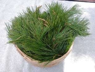 松葉には18種類のアミノ酸を含み、鉄分・カルシウム・カリウム・マグネシウム・ ポリフェノールの一種であるケルセチン、松のヤニに含まれる特有のテルペン類、さらに活性酸素を消去するといわれる抗酸化物(SOD)が含まれています。
